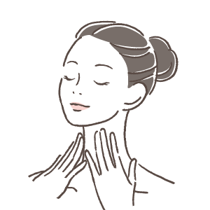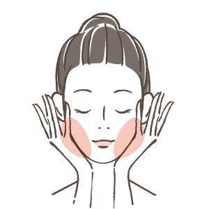 顔全体になじませたら、両手で顔を包み込むようにハンドプレス。 -